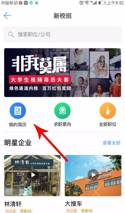 然后可以看到“我的简历”、“求职意向”和“全部职位”三个选项,点击其中任意一个便可打开身份认证界面,然后可以发布自己的简历。