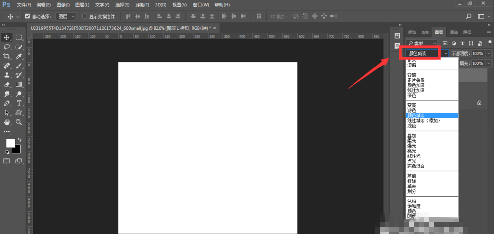 调整图样模式为颜色减淡,左侧图形显示一片空白,