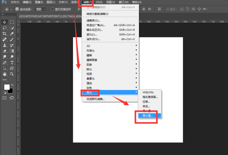 然后打开滤镜菜单下的其他-最小值,