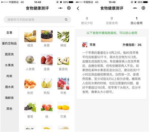 想知道每天吃的食物健不健康吗?可以使用【食物健康测评】小程序,提供食物的升糖指查询和营养介绍,帮助评测日常饮食的健康度,并且给出有效的食谱调整,让长辈们吃得健康,吃得安心。