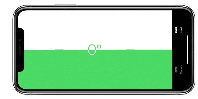 轻点测距仪应用中的“水平仪”即可使用此功能,将设备的一条边置于要摆正的物体上,水平仪会为您显示物体偏离中心的度数。您可以调整物体,直到应用显示0度且变为绿色。