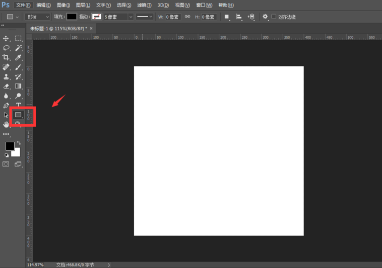 打开Photoshop软件,新建一个画布,大小随意,然后点击工具栏中的矩形工具,