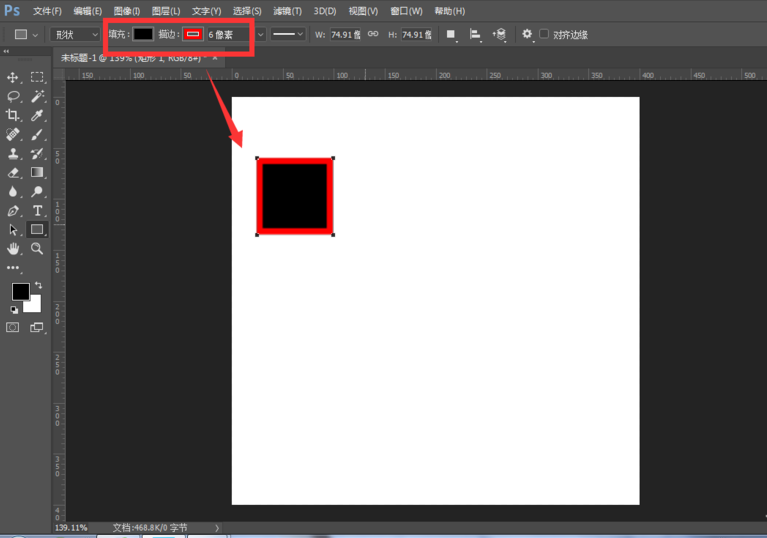按住shift键,在画布中绘制一个正方形,然后填充一个颜色,将描边打开也是设置一个颜色,描边大小根据当前页面来决定,如图,