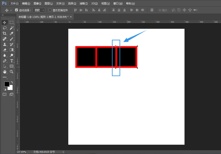 然后复制一个矩形,将其调整到第一个图形的右侧位置,中间描边区域要重合,如图,