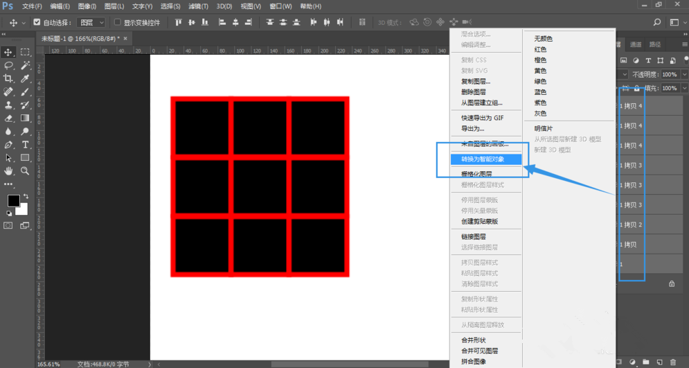 然后将全部图层选中,右键选择转换为智能对象,