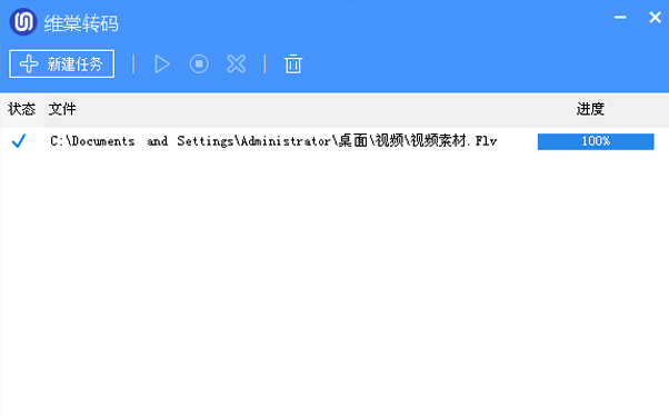 弹出维棠转码页面,点击左上角的新建任务选项。
