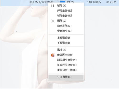 点击立即下载按钮,会显示下载进度,下载完成,右击视频会弹出下拉菜单,点击打开目录,找到视频播放即可。