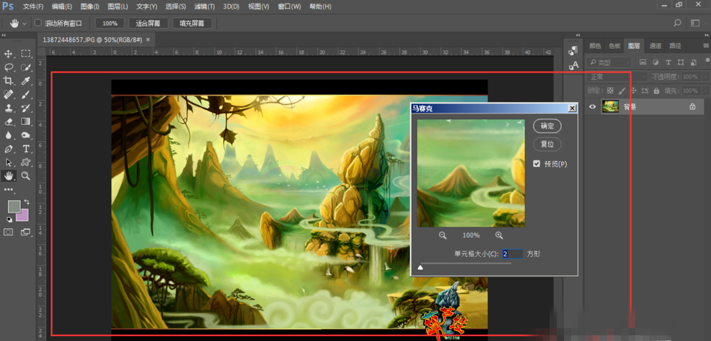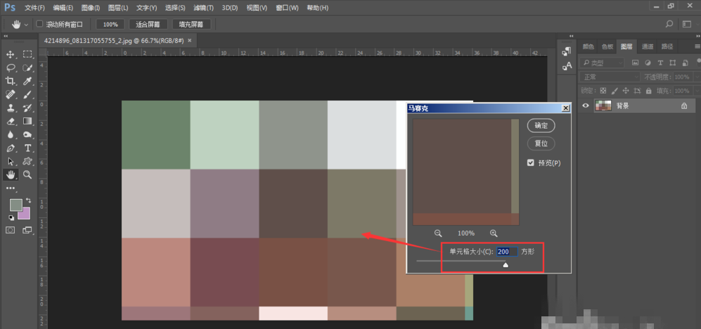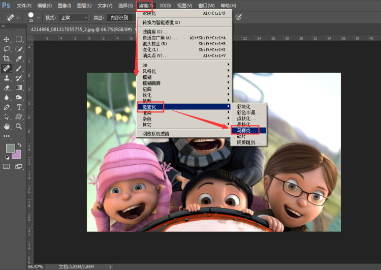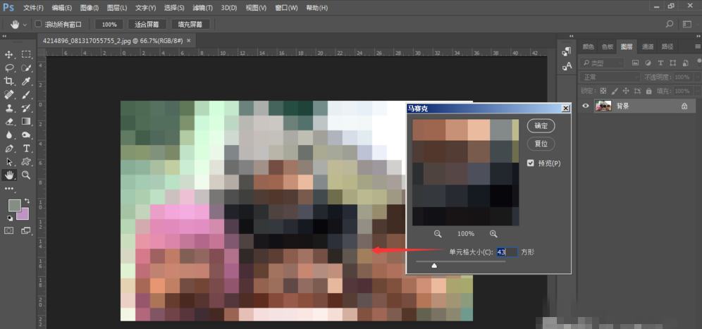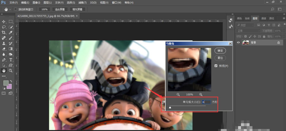 点击滤镜-像素化-马赛克,