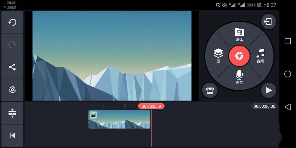 2、点击媒体导入一张背景素材图片,点击对号确认。