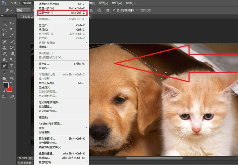 如图,在photoshop软件中有一张图片,处理过程中出现了失误,点击菜单栏的编辑,
