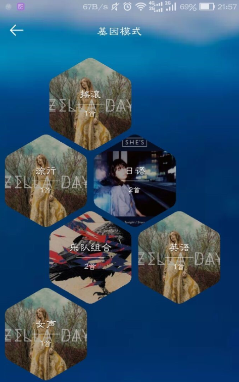这样一来,你想听什么类型的歌曲就点击那个六边形。