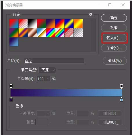 对方收到之后,可以在PS中点击载入,即可添加到渐变中。