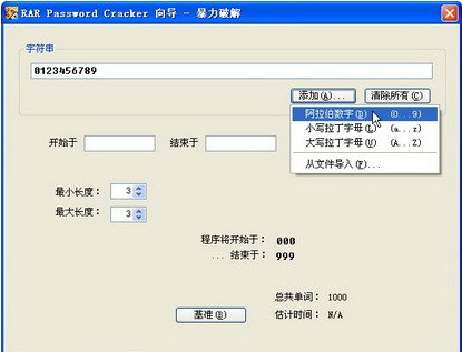 打开“暴力破解”向导页,用户可以根据自己设置密码的习惯设置密码特征。单击“添加”按钮添加字符串,并设置密码的长度。然后单击“下一步”按钮。