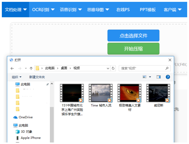 进入迅捷PDF转换器在线官网,找到视频压缩功能,点击选择文件,将要压缩的文件添加到压缩页面;