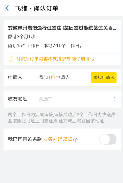 填写相关资料,之后点击【去付款】,即可办理港澳台通行证。