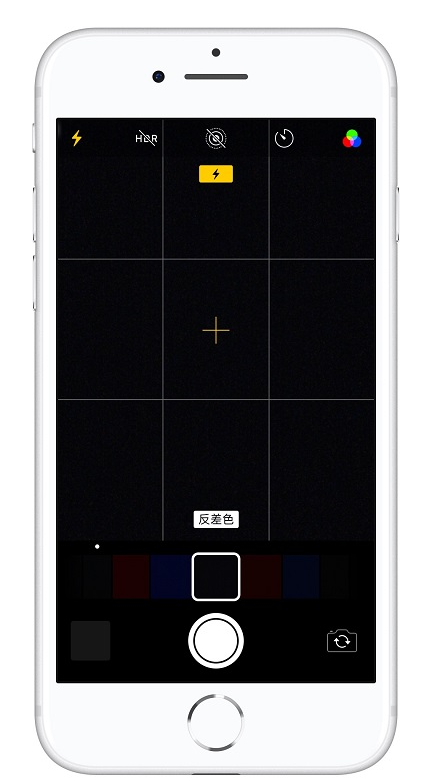 在相机中打开「闪光灯」,并关闭「HDR」与「Live Photo」,选择「反差色」滤镜。