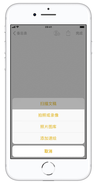 前往「备忘录」,创建一个新的空白备忘录,点击屏幕底部的「+」并选择「扫描文稿」,拖曳四个角落,调整文档范围,即可将文档扫描以PDF格式储存在手机中,随时预览。
