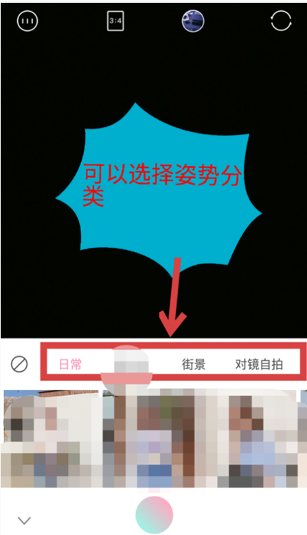 打开轻颜相机app,进入拍摄界面,点击下方的【姿势】功能,