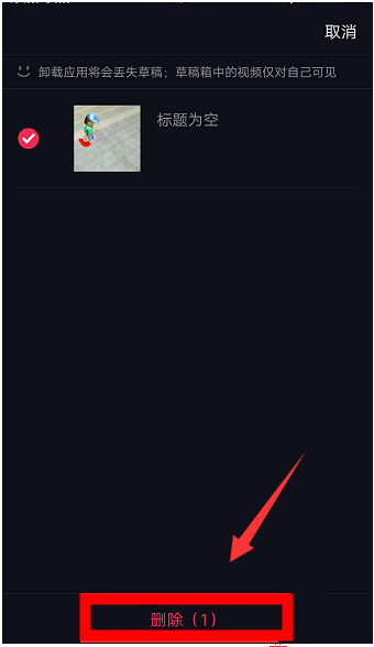 点击下方的删除,再点确定,视频草稿就删除了。