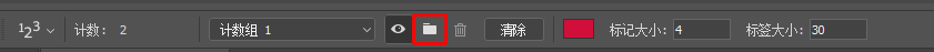 在工具栏中选择计数工具,设置计数时的标记大小、标签大小以及数据颜色,最好选择显眼的颜色。