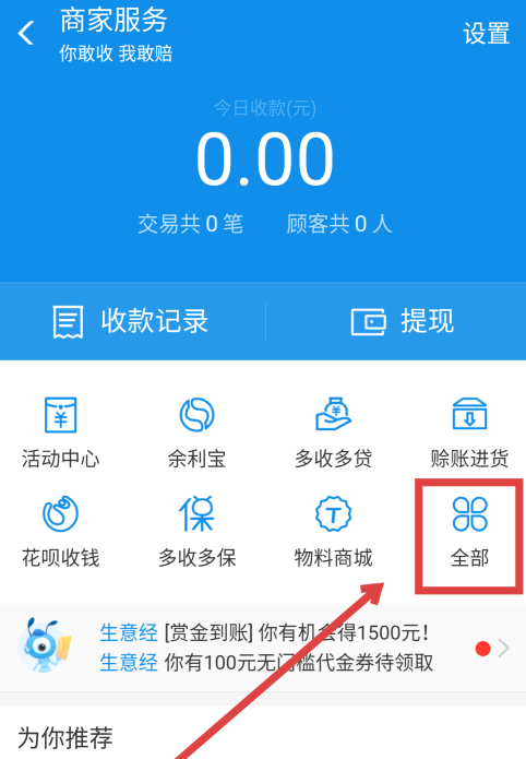 进入商家服务界面,点击“全部”选项,