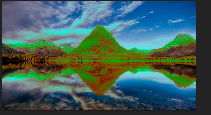 然后分别隐藏R、G、B三个通道,来查看图片整体效果,