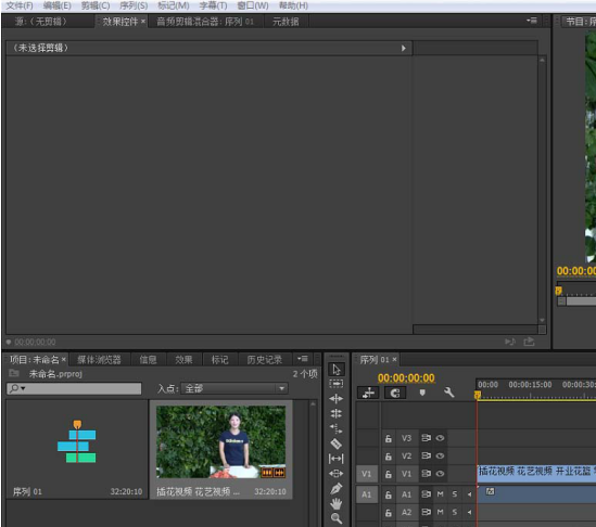 打开Premiere软件,新建项目和序列,导入素材文件,