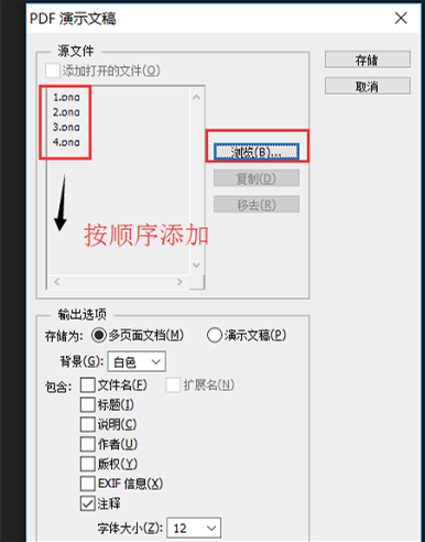 弹出新界面,点击“浏览”,将转化为图片格式的PDF文档添加进来,一定要按顺序添加,