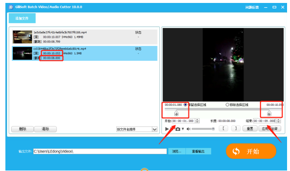 两个视频可以一起截取,同样是十秒的视频、截取八秒,