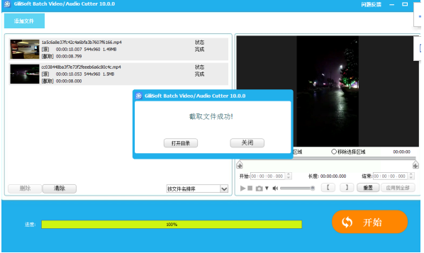 点击“浏览”,选择视频存储路径,点击开始就会自动保存,最后提示截取成功。