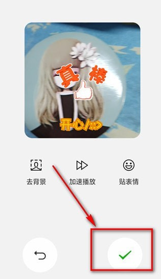5、拍摄完成,我们可以进行【去背景】、【加速播放】、【贴表情】等操作,点击小视频还能添加字幕,