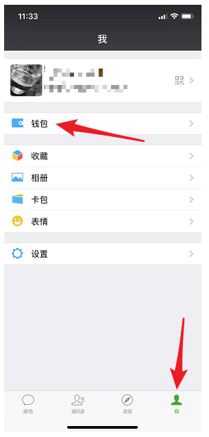打开手机微信,点击【我】-【钱包】,