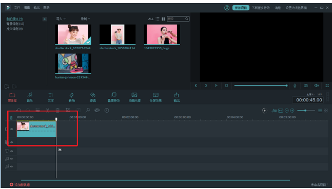 重复该步骤多次,将所选图片全部拉入时间轴内,