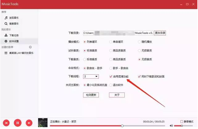 MusicTools涵盖了QQ音乐、网易云音乐、酷狗音乐、虾米音乐、百度音乐这五大平台的音乐资源。打开软件,进入设置界面,勾选“启用混淆功能”,搜索歌曲时不需要手动切换音源,自动寻找全网资源。