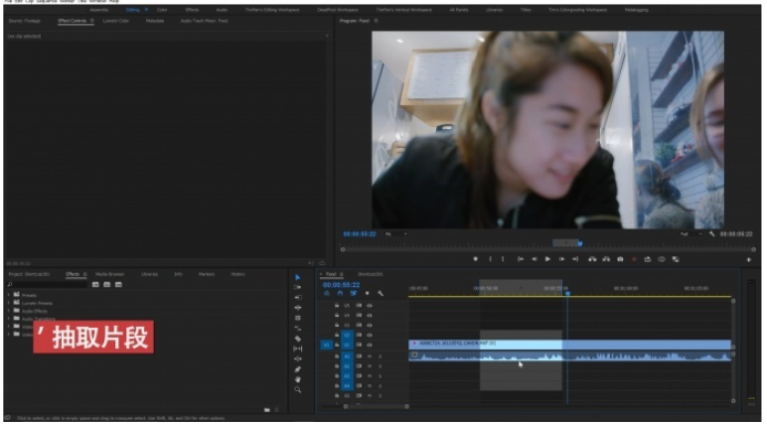 当你想删除或者抽取一段素材的中间部分时,可以通过i和o键设定工作区,随后使用分号键来删除工作区内的片段。如果你想抽取这个片段,只需要按下引号键就可以轻松实现。