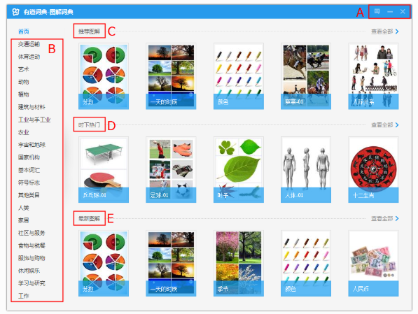 进入图解词典功能界面,小编进行了细致分类,如图,