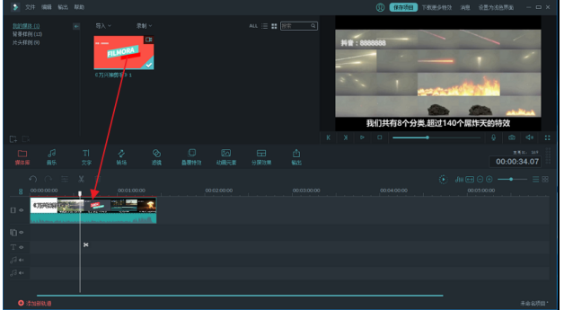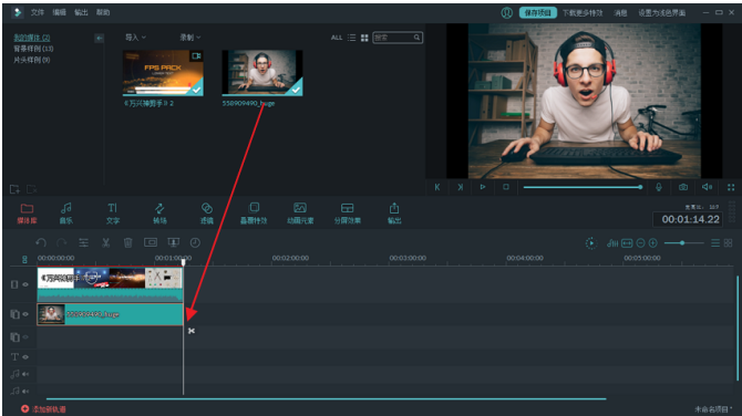 用鼠标左键单击视频文件,将其拖曳到时间轴中,