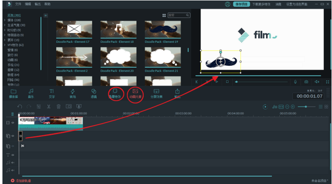 在预览窗口中点击叠覆特效或动画元素,找到适合遮盖的图案,添加到需要遮盖的区域,特效遮盖就完成啦。