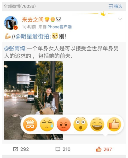 新浪微博最近悄悄推出了“点赞打赏”功能,你在给单条微博点赞时可以从态度列表中发现一项“赏”功能,这也就是所谓的打赏服务。