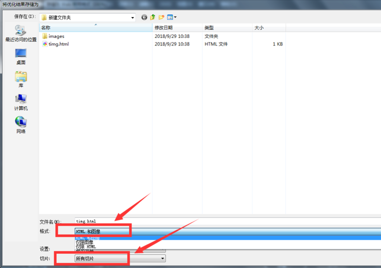 必须选择保存文件格式为“HTML和图像格式”,将所有切片全部导出,