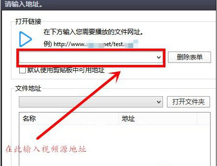 4.在软件弹出的打开链接的操作框中输入视频源的地址链接,输完后鼠标左键单击界面下方“确定”按钮即可。