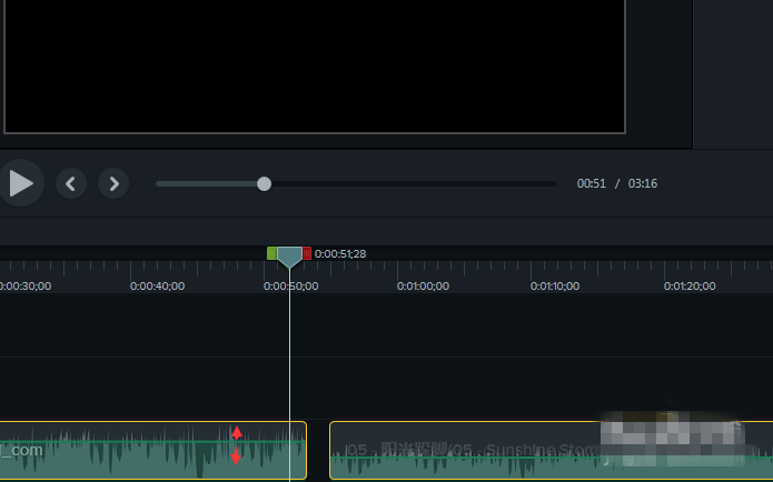 音频点添加成功,如下图,会有一个空心小圆点,这就说明在那个时间点上有一个音频点设置成功了。鼠标点击选中音频点,通过鼠标上下拖动来调整两边音频的音量大小,效果如图。