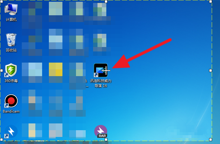 默认情况下,方框定位在桌面左上角,点击正中间的十字架,