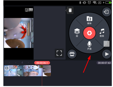 视频导入之后,在右侧菜单列表中点击“声音”,就可以进行配音录制,