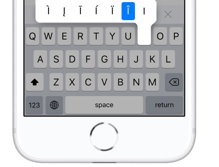 汉语拼音字母具有不同的音调标识,iPhone原生输入法在全键盘模式下、长按需要标注声调的字母,可在二级菜单中选择带有声调的字母。