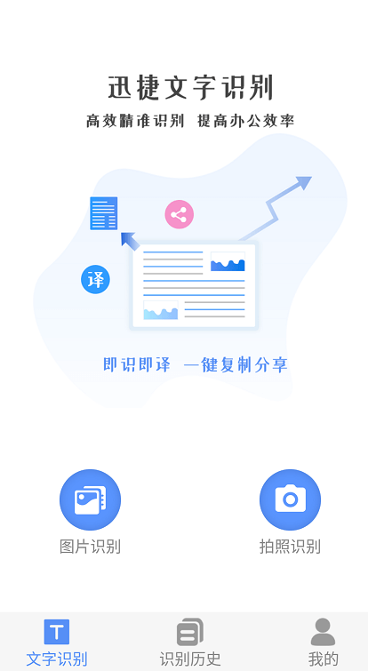打开迅捷文字识别APP,进入界面,点击拍照识别,
