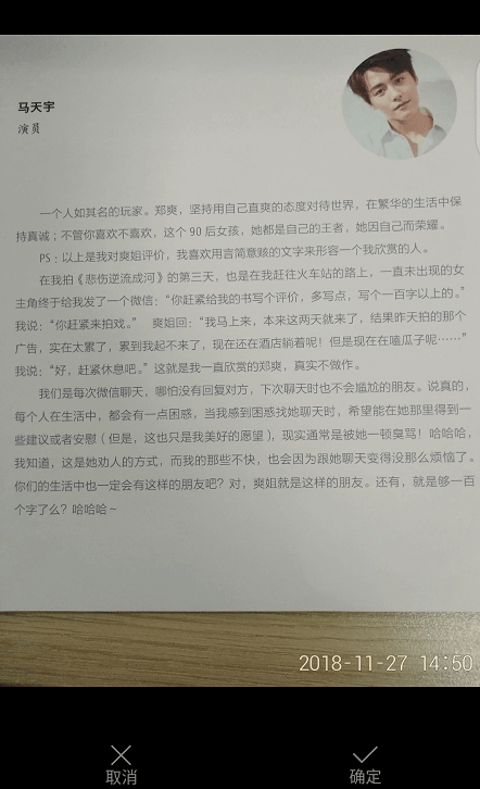 拍下需要识别的文字,拍好之后,单击确定按钮,