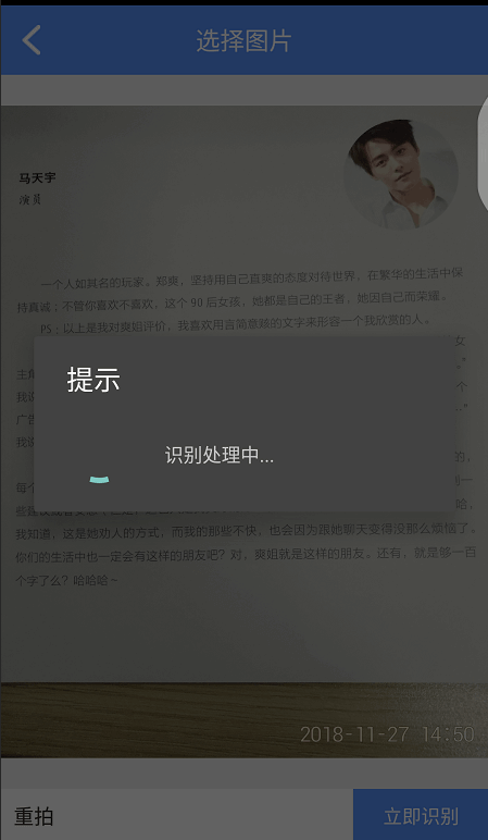 页面跳转,点击立即识别按钮,稍等一会,即可完成识别,