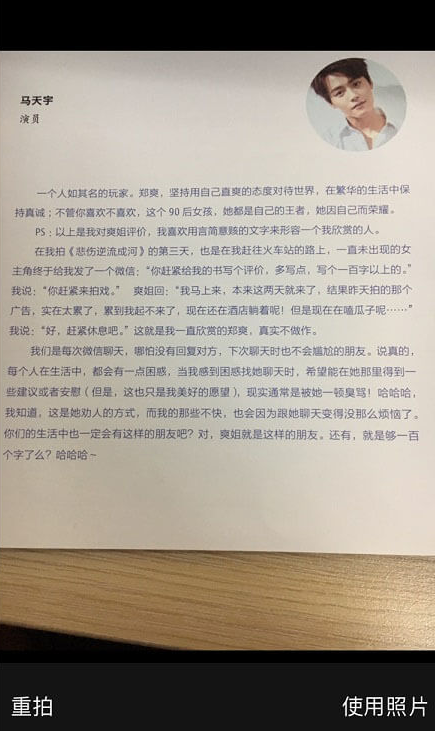 点击拍照,拍摄要识别的图片文字,拍好之后点击使用照片,