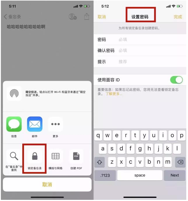 iPhone自带的备忘录具有加密功能。